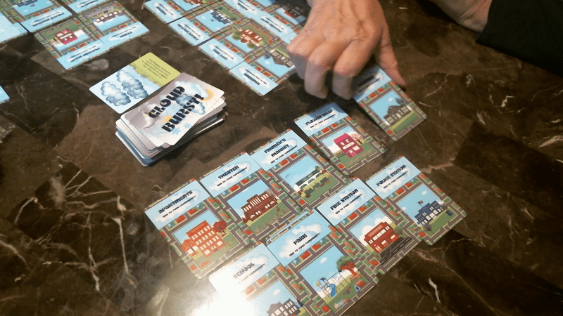 The game: Build your Community by collecting the proper number of different Community Cards, but watch out for the weather. When it turns bad, anything can happen.